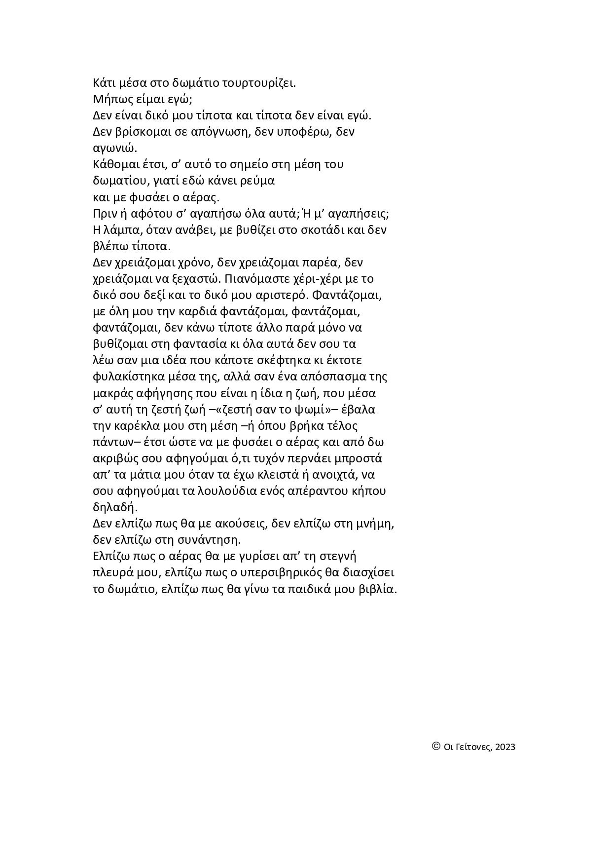 Ένα κείμενο από τους Γείτονες που δεν υπάρχει στον δίσκο.